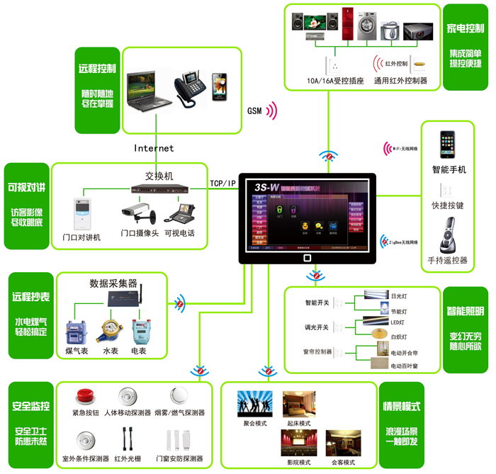 智能(néng)家(jiā)居系統是(shì)利用(yòng§₩)先進的(de)計(jì)算(suàn)機(jī)技(jì)σΩ®✔術(shù)、網絡通(tōng)訊技(jì)術(shù)、綜合布線技(jì)術(shù)、依¶≈©照(zhào)人(rén)體(tǐ)工(gōng)程學原理¥↑™§(lǐ),融合個(gè)性需求,将與家(jiā)居生(s♦λ "hēng)活有(yǒu)關的(de)各個(gè)子(zǐ)系統如(rú)安防、燈光(guānγΩ×g)控制(zhì)、窗(chuāng)簾控制(zhì)、煤氣閥控制(zhìδ✘)、信息家(jiā)電(diàn)、場(chǎng)景聯動、地(dì)闆采♥¥↔暖等有(yǒu)機(jī)地(dì)結合在一(yī)起,通(tōng)過網絡化(huà)綜α↔εσ合智能(néng)控制(zhì)和(hé)管理( ♠ §lǐ),實現(xiàn)以人(rén)為(wèi)本的(d' ¶e)全新家(jiā)居生(shēng)活體(tǐ)驗。智能(néng)家(j↓☆iā)居系統讓您輕松享受生(shēng)活!出門(m&×♥én)在外(wài),您可(kě)以通(tōn γ₩₹g)過電(diàn)話(huà)、電(diàn)腦(nǎo•)來(lái)遠(yuǎn)程遙控您的(de)家(jiā)₹✘居各智能(néng)系統,例如(rú)在回家(jiā)的(de)路(lù)上(shàng)提前π←打開(kāi)家(jiā)中的(de)空(kōng)調和↔↓₽(hé)熱(rè)水(shuǐ)器(qì);到(dào)家(jiā)開(kāi)門(m↕γ↑←én)時(shí),借助門(mén)磁或紅(hóng)外(wài)傳感器(qì)λα,系統會(huì)自(zì)動打開(kāi)過道(dào)燈,同×≥✔φ時(shí)打開(kāi)電(diàn)子(zǐ)門(mén)鎖,安防撤防,開(kāi)啓ε"家(jiā)中的(de)照(zhào)明(míng)燈具和(hé)窗(chuāng)簾迎εδ&接您的(de)歸來(lái);回到(dào)家(jiā)裡(lǐ),使用(yòng)遙₽§α控器(qì)您可(kě)以方便地(dì)控制(zhì)房(fáng)≥€間(jiān)內(nèi)各種電(diàn)器(qì)設備,可(kě)以通(→β↓tōng)過智能(néng)化(huà)照(zhào)明(míng)系統選擇預設的® ↕(de)燈光(guāng)場(chǎng)景,讀(dú)書(shū)♦時(shí)營造書(shū)房(fáng)舒适的(de)安靜(jìng);卧室裡(₽∑✘lǐ)營造浪漫的(de)燈光(guāng)氛圍這(zhè)一(yī)切,主 "♠人(rén)都(dōu)可(kě)以安坐(zuò)在沙發上(shàng)從(cón<''g)容操作(zuò),一(yī)個(gè)控制(zh™ì)器(qì)可(kě)以遙控家(jiā)裡(lǐ)的(de)一(yī)切,比如(rú)拉窗( §chuāng)簾,給浴池放(fàng)水(shuǐ)并自(zì)∏β動加熱(rè)調節水(shuǐ)溫,調整窗(chuāng)簾✔、燈光(guāng)、音(yīn)響的(de)狀态;廚房(fáng)配有(yǒu)可(↕↕kě)視(shì)電(diàn)話(huà),您可(kě•♠γ₩)以一(yī)邊做(zuò)飯,一(yī)邊接打電(diàn)話(h♥λ↕ uà)或查看(kàn)門(mén)口的(d÷¶e)來(lái)訪者;在公司上(shàng)班時(shí),家(jiā)裡(lǐ)的(de)€₩ 情況還(hái)可(kě)以顯示在辦公室的(de&✔φ♥)電(diàn)腦(nǎo)或手機(jī)上(shàng),随時(shí)查看(©β←₹kàn);門(mén)口機(jī)具有(yǒu)拍(pāi)照(zhào)留影(yǐn§$g)功能(néng),家(jiā)中無人(rén)時(shí)φ∑¶如(rú)果有(yǒu)來(lái)訪者,系統會(huì)拍(pāi)下(x₹↔ ià)照(zhào)片供您回來(lái)查詢。